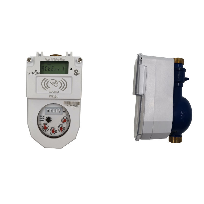 STW36-S est un mètre d'eau intelligent de paiement d'avance de carte sèche et horizontale d'IC lancé par la société de Stron. Recharge d'Usres à base d'eau sur la carte futée de RFID. Ce produit futé a des droits de propriété intellectuelle indépendants. Les composants électroniques du module de mètre d'eau ont fait le nouveau processeur très réduit de puissance comme noyau, détection de tension de batterie et la lecture de carte de RFID/écriture, le mètre d'eau intelligent sec payé d'avance etc. « Stron » a des fonctions de la mesure d'écoulement d'eau, de la soupape de commande automatiquement, de l'interférence antimagnétique, d'aucune eau de retour, du tarif de TOU, de l'IP68 parfait etc. imperméable. Il a les avantages parfaits de la consommation de puissance faible, la basse alarme de crédit de la sonnerie, la haute précision et l'entretien automatique de la valve et de l'acompte commode d'utiliser-et.
